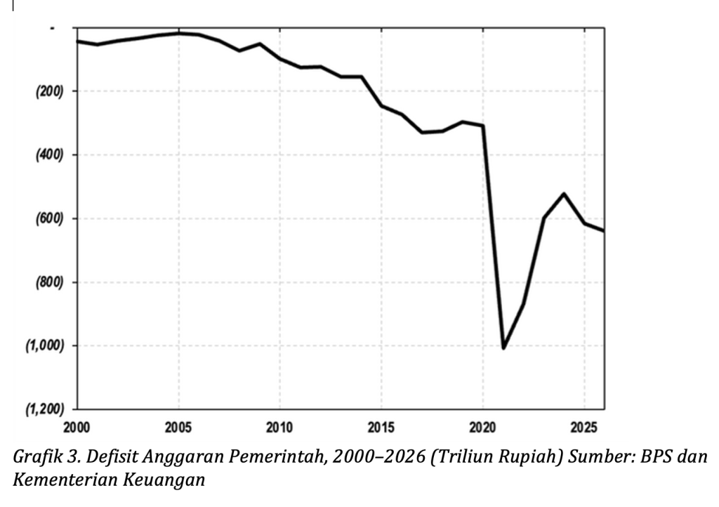 Pertumbuhan belanja pemerintah rata-rata 26% selama 1951–2025 tidak sejalan dengan potensi penerimaan yang berhasil dihimpun, sehingga harus dikompensasi dengan defisit anggaran yang semakin dalam. Kondisi “besar pasak daripada tiang” ini menunjukkan dua hal: belum berhasilnya reformasi kebijakan penerimaan negara, khususnya perpajakan, dan mahalnya biaya belanja pemerintah di tengah sempitnya ruang ekspansi fiskal yang harus ditambal dengan volume utang yang terus meningkat. Hal ini semakin berisiko di tengah stagnannya pertumbuhan ekonomi di level 5% dan reformasi institusi perpajakan yang belum tuntas.