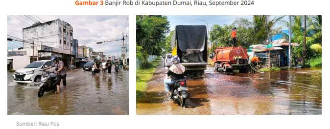 Banjir rob di Kota Dumai dan Kabupaten Kepulauan Meranti, Provinsi Riau, menjadi contoh nyata dari dampak ini. Penurunan muka tanah gambut berkontribusi langsung pada fenomena rob yang berdampak langsung pada warga. Air laut yang masuk ke area perkotaan merusak kendaraan dan benda berbahan besi lainnya, serta mengganggu arus lalu lintas