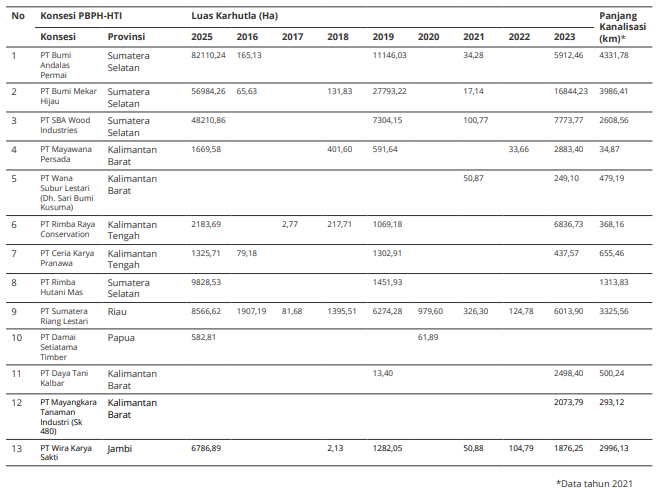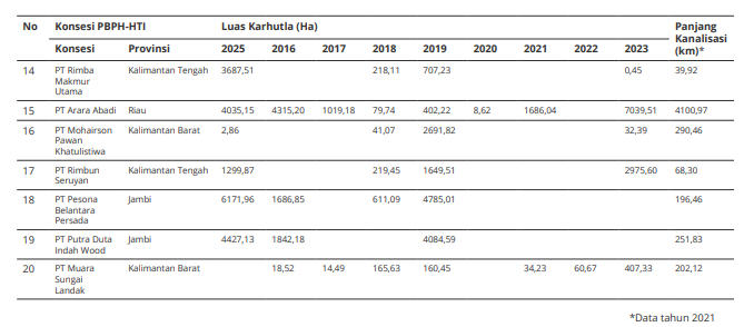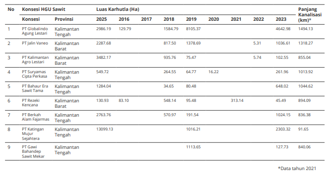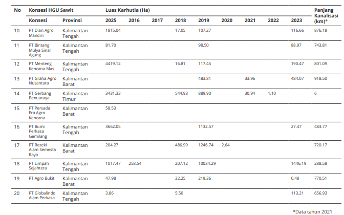 Peringkat 20 Konsesi HGU Sawit dengan Degradasi Tertinggi