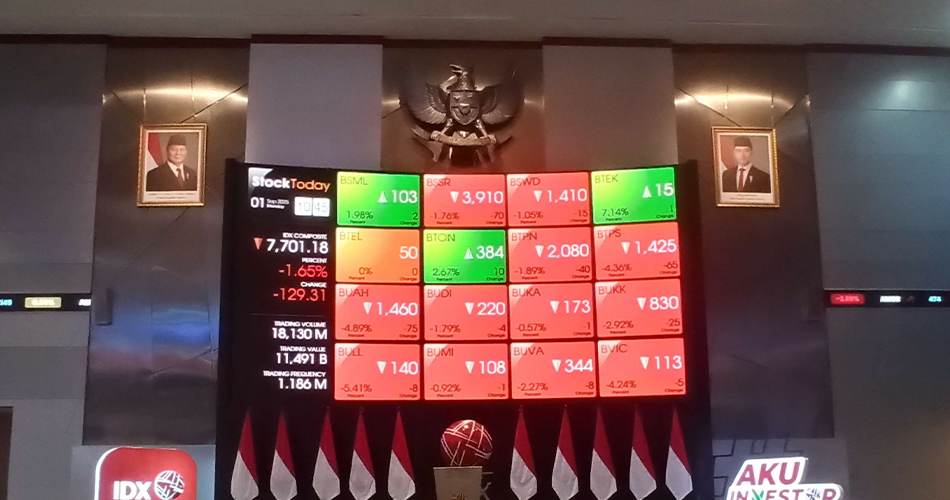 JAKARTA – Indeks Harga Saham Gabungan (IHSG) dibuka di zona hijau pada perdagangan Selasa (2/9) pagi, didukung oleh rilis sejumlah data perekonomian domestik yang solid. Meskipun demikian, pergerakan indeks masih dibayangi oleh kekhawatiran investor terhadap situasi keamanan dan politik dalam negeri.