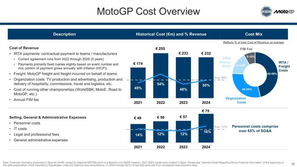 Menariknya, pengeluaran modal (capital expenditure) hanya berkisar 1,5% dari total pendapatan, menandakan efisiensi dan kestabilan finansial yang tinggi. Komponen biaya terbesar MotoGP berasal dari pembayaran kepada tim (IRTA), logistik global, serta produksi dan distribusi siaran TV.