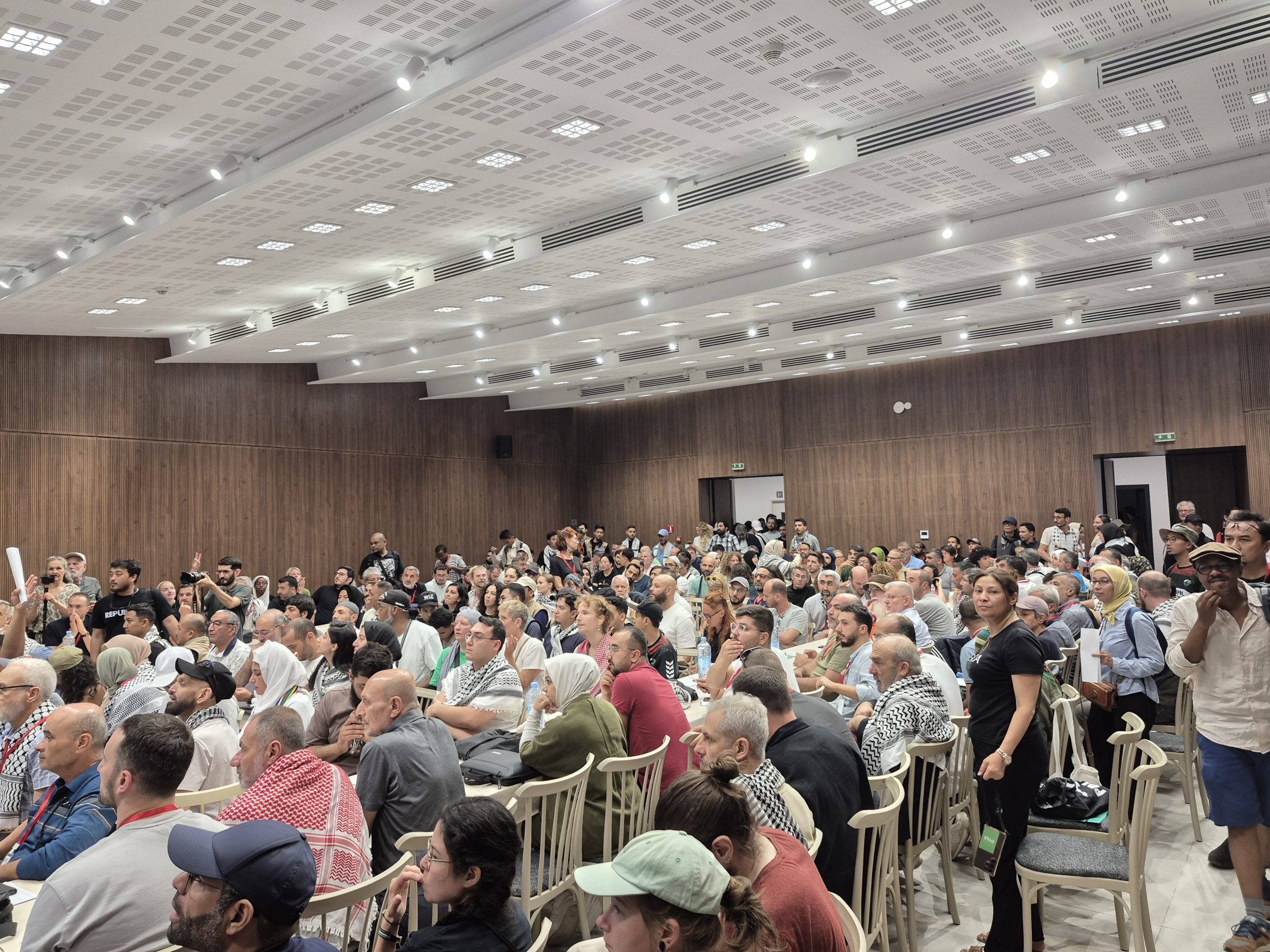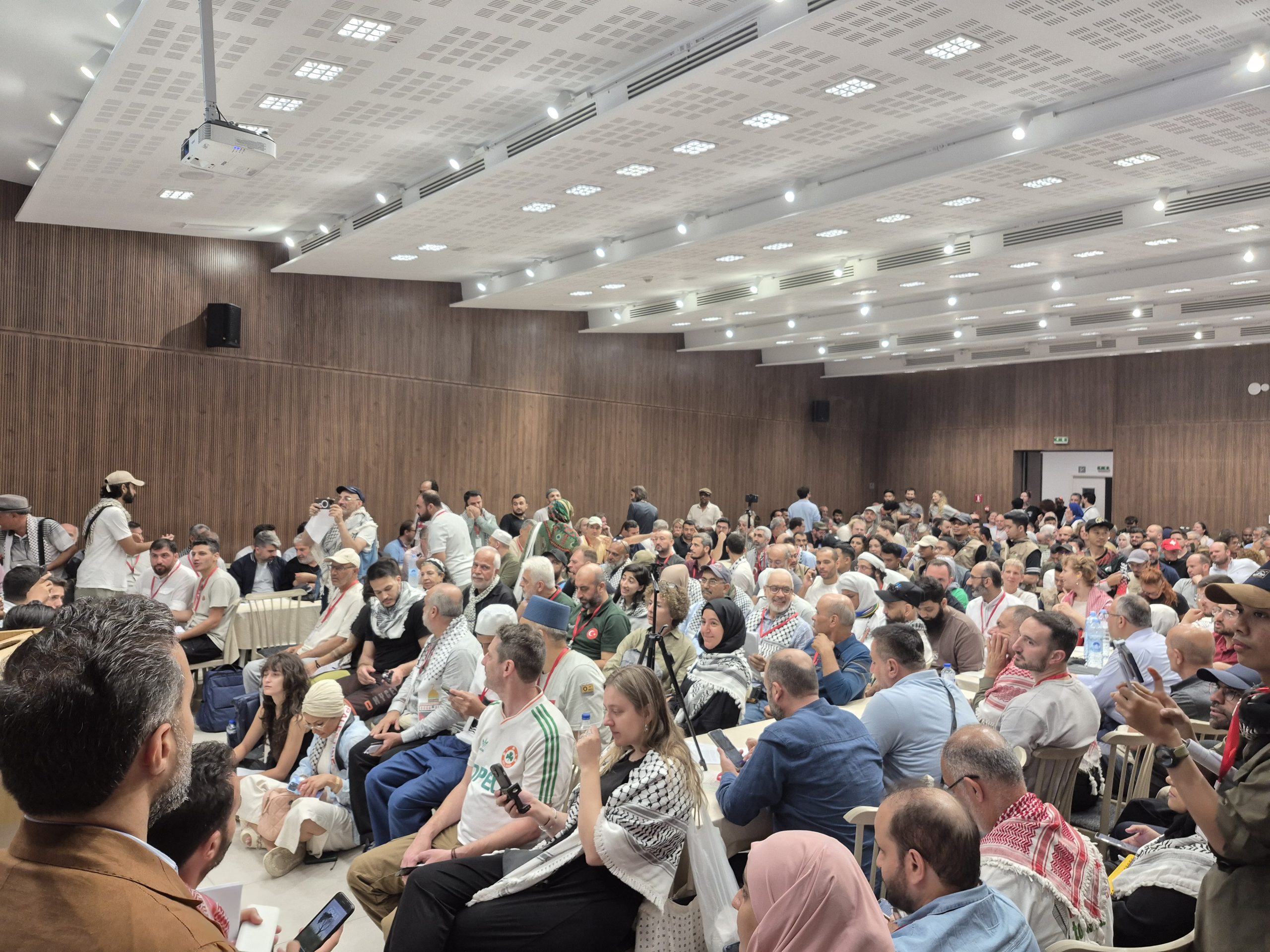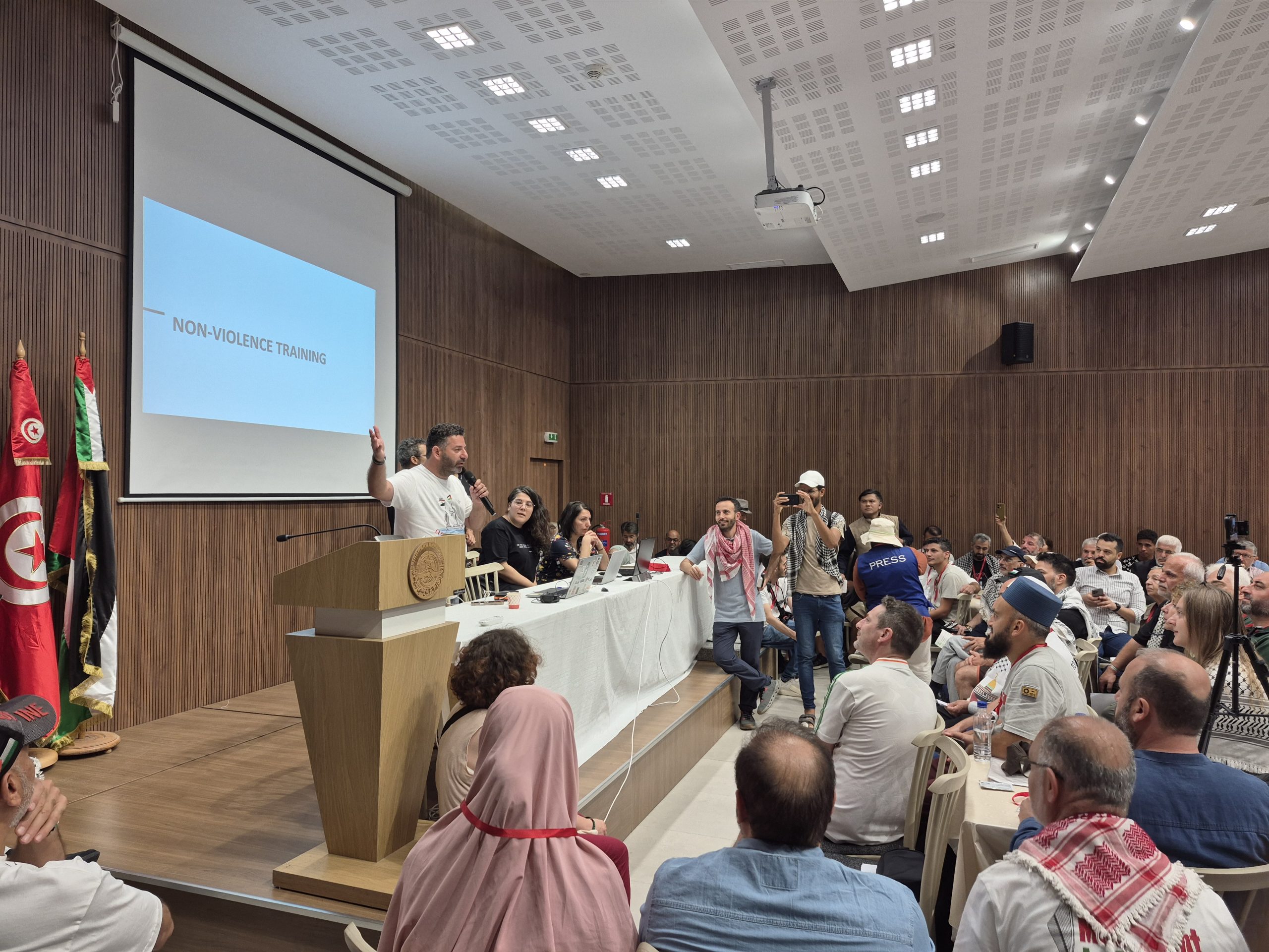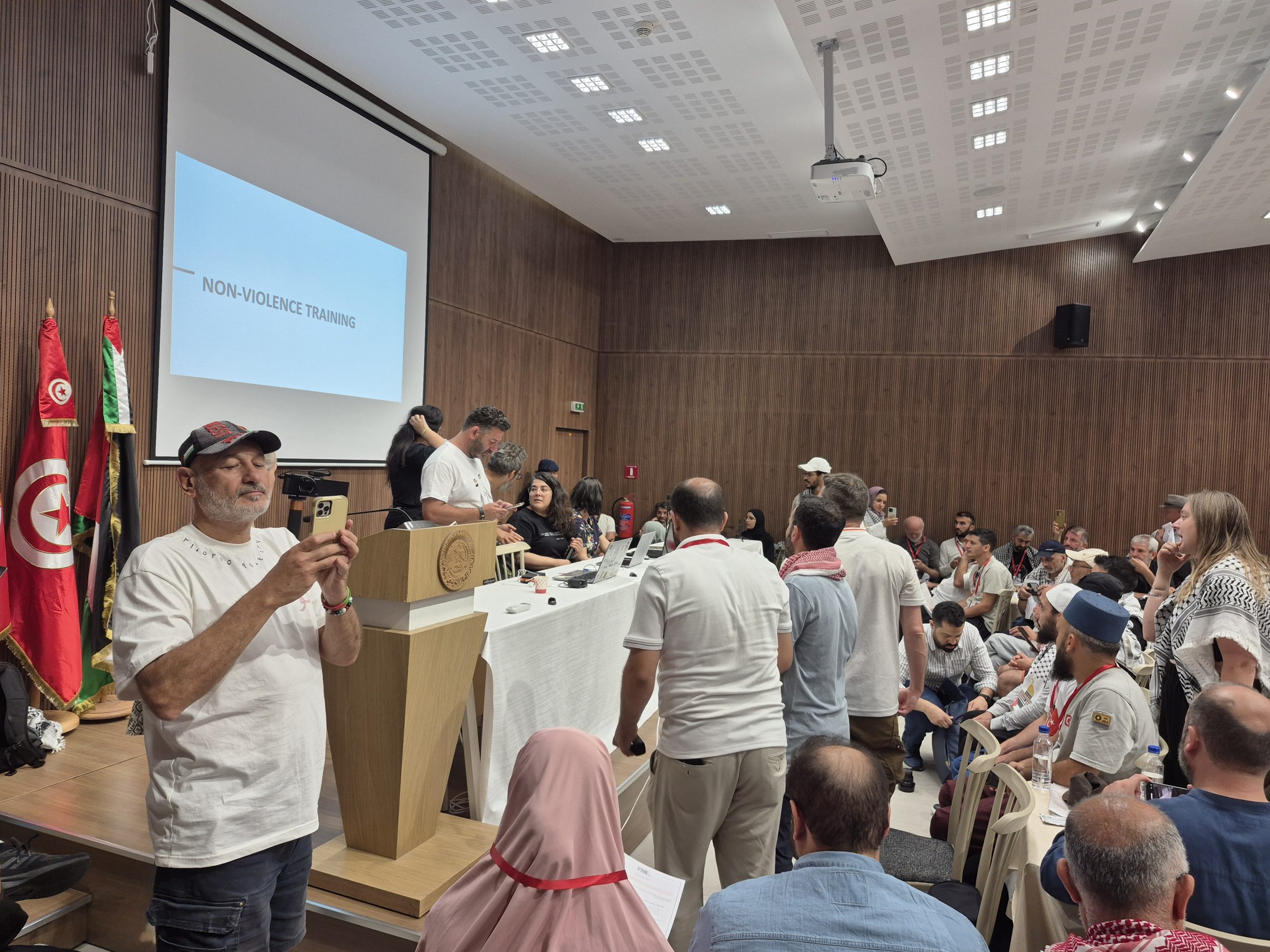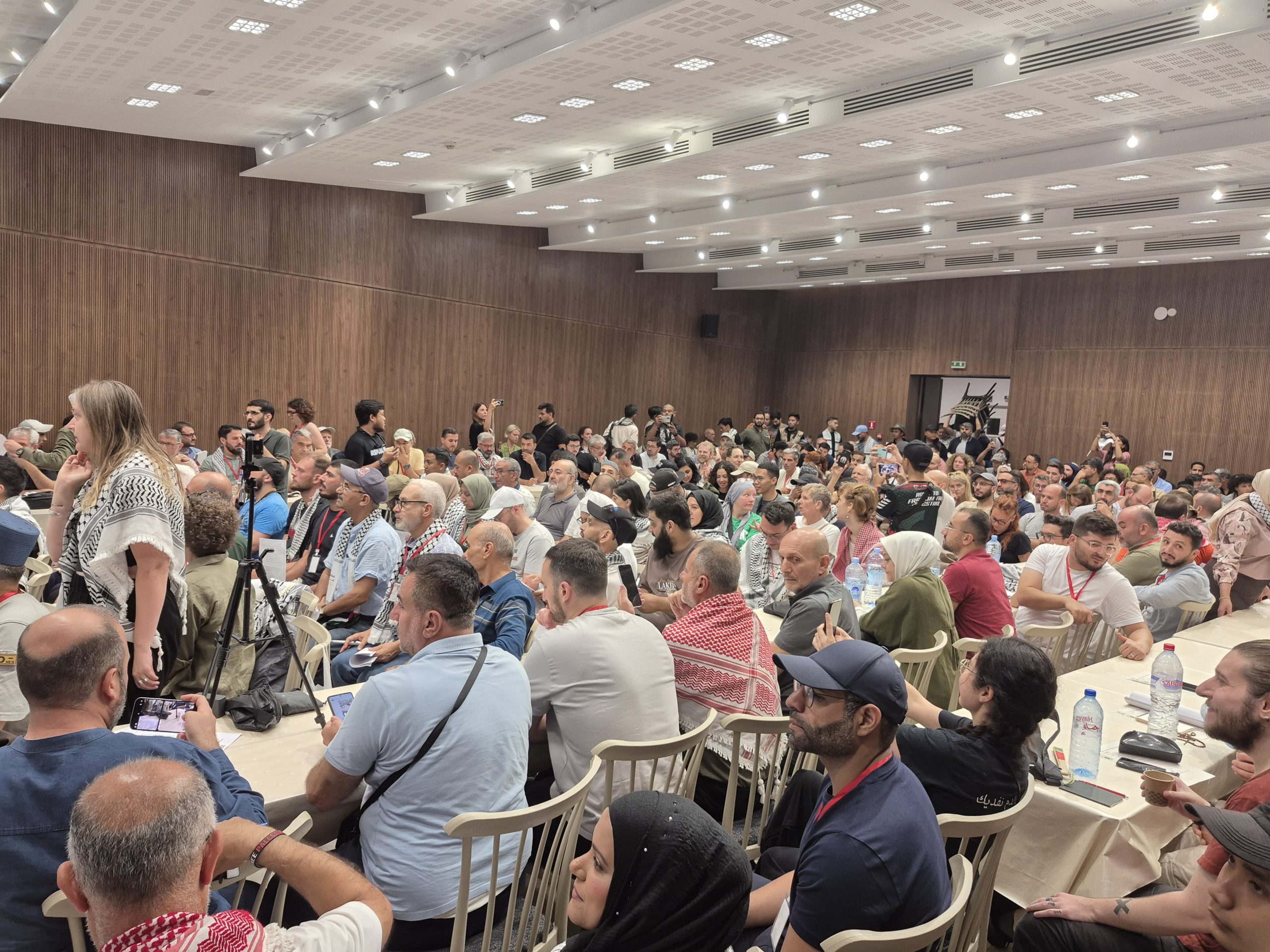 TUNIS – Ratusan relawan Global Sumud Flotilla (GSF) menghadiri pertemuan perdana yang digagas oleh Steering Committee (SC) di Gedung Serikat Buruh Tunisia pada Rabu (3/9/2025). Pertemuan ini untuk mematangkan rencana pelayaran ke Jalur Gaza.