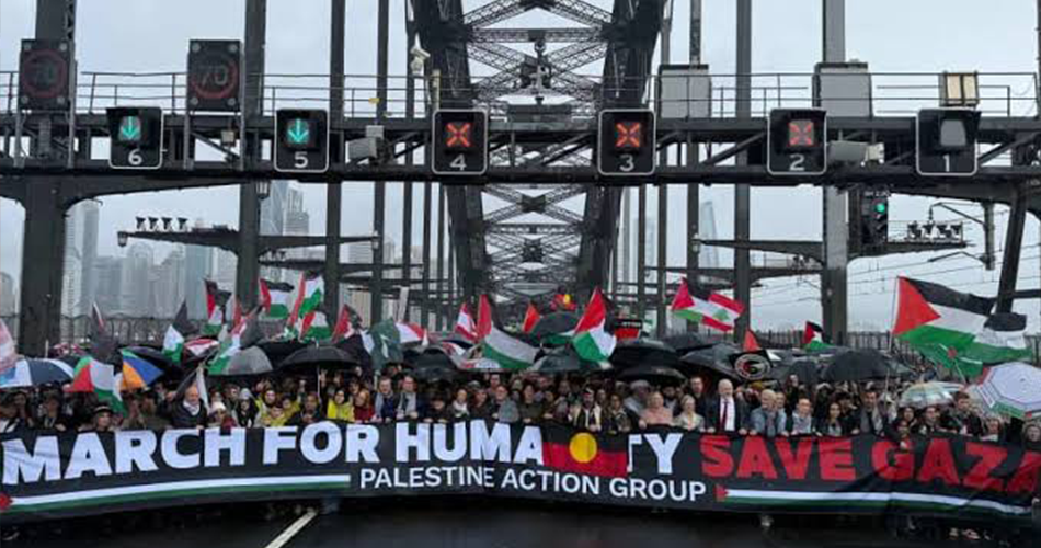 SYDNEY – Sekitar 90.000 pendemo, menurut kepolisian New South Wales, dan hingga 300.000 orang menurut penyelenggara, melakukan aksi unjuk rasa besar-besaran menyeberangi Sydney Harbour Bridge menyuarakan solidaritas terhadap rakyat Palestina.